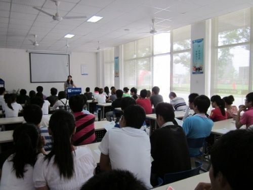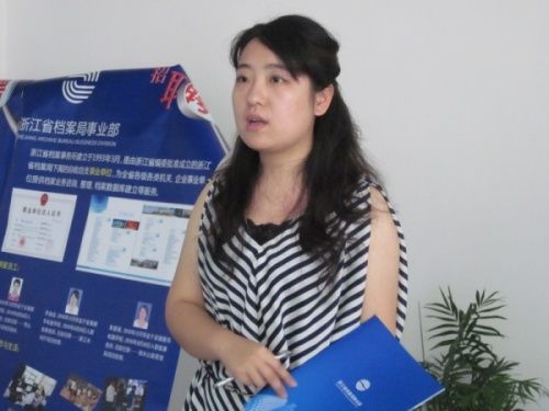 浙江省檔案局人力資源部胡經理正在向新華學子講解企業文化