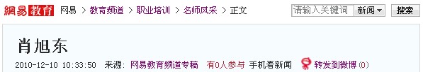 網易教育訊 肖旭東老師,1998年畢業于山東大學電子學與信息系統專業,是安徽新華電腦專修學院計算機軟件開發、網站開發及運營專家,科技金牌講師,軟件信息專業高級主講,有多年的國際軟件開發經驗和豐富的IT教學經驗。大學畢業之后,同年參軍進入蚌埠坦克學院,擔任學院計算機技術首席講師,參與科研與教學工作。期間不僅獲得多項軍隊科技進步獎,每年都被評為優秀專業人士并獲得嘉獎。在蚌埠坦克學院工作六年,他不僅積累了豐富的項目研發經驗,更主要的是軍隊生活鍛造了他鋼鐵般的意志。
