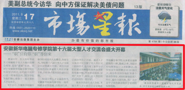 《市場新報》報道:安徽新華電腦專修學院第十六屆大型人才交流會盛大開幕