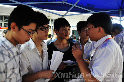 網易教育訊 日前,安徽新華電腦專修學院內展位云集,百家企業云集于此招賢納士,然而新華學子們則在此“席珍待聘”。據統計,本次校園招聘會共有浙江省新華書店集團有限公司、浙江省檔案事務所、浙江郵電工程局、浙江八方電信有限公司、申通快遞有限公司、成都鵬博士電信傳媒集團、江蘇泗水動漫有限公司、上海德搜信息技術有限公司、臺州諾亞方舟網絡技術有限公司、上海火速網絡科技有限公司等等200家單位前來招聘,提供室內裝潢、廣告設計、網絡技術、軟件開發、影視制作、動漫游戲等1000多個就業崗位。