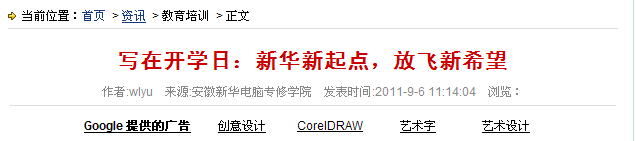 當桂花香飄校園的季節,2011年級新生走進了安徽新華電腦專修學院的課堂,翻開了人生嶄新的一頁。站在人生新的起點上,他們胸懷夢想,信心百倍,以飽滿的熱情迎接新的學期,新的開始,還有那些新生活中未知的精彩。