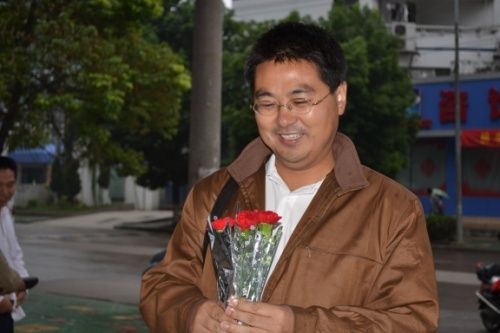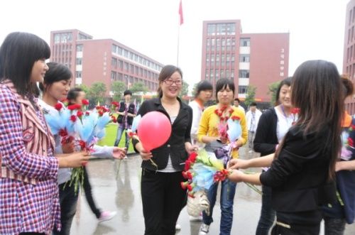 安徽新華電腦專修學院何貴金院長向老師們獻花