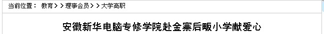 安徽電視臺(tái)公共頻道《新聞第一線》欄目大型新聞活動(dòng)“牽手行動(dòng)?鄉(xiāng)村響鈴”欄目組,走訪了安徽省的各個(gè)偏遠(yuǎn)山區(qū)小學(xué),客觀報(bào)道了農(nóng)村教育的現(xiàn)狀。安徽新華電腦專修學(xué)院看到報(bào)道后,積極響應(yīng)國家教育工作,大力發(fā)揚(yáng)新華“興教報(bào)國”的精神,積極主動(dòng)投入到山區(qū)孩子的教育幫扶項(xiàng)目工作中。