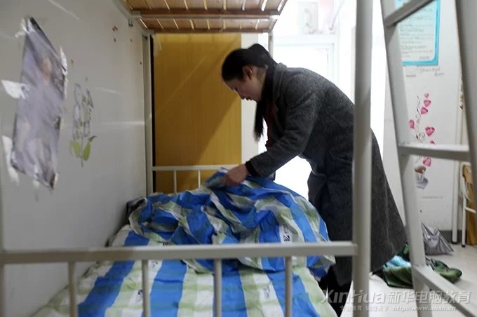漂亮的班主任姐姐在鋪床!來新華才有這種讓人感動的情懷!