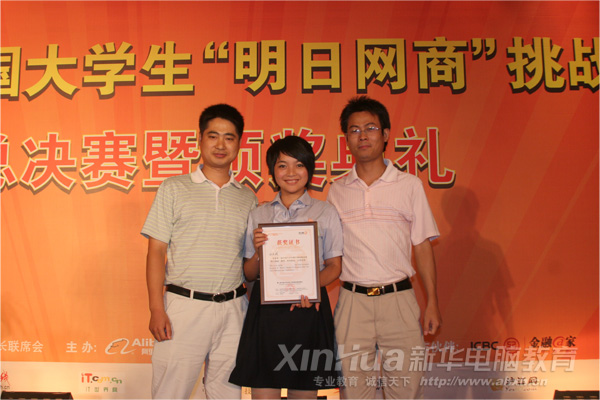 數月后,在總決賽上,汪云娟不僅獲得“明日網商”挑戰賽銅獎,還獲得 “校園十佳CEO”、“生活服務網絡經紀人”大獎。記者采訪中,汪云娟欣喜地說:“盡管一分之差未能獲得銀獎,但我向幾十萬參賽大學生證明了新華的驕傲。”