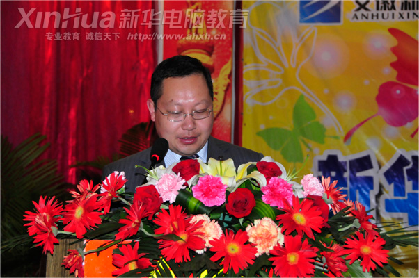 安徽新華電腦專修學院院長何貴金在文化節開幕式中講話