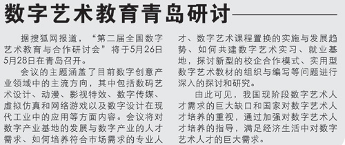 5月11日,《安徽商報》報道:“數字藝術教育青島研討”的新聞,敬請關注!