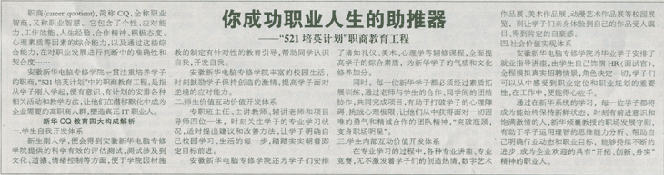 8月9日,《安徽商報》A14版報道:“你成功職業人生的助推器”, 敬請關注!