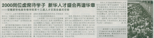 7月9日,《安徽商報》報道:“2000崗位虛待學子 新華人才盛會譜華章——安徽新華電腦專修學院第十三屆人才交流會盛況空前 ”,敬請關注!