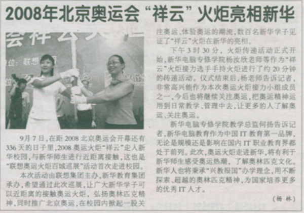 當前位置:首頁 > 新聞中心 > 青春新華 > 《安徽商報》報道:2008北京奧運會“祥云”火炬亮相新華