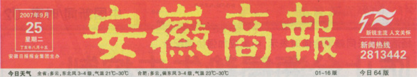 《安徽商報》報頭《安徽商報》報道新聞頁面截圖