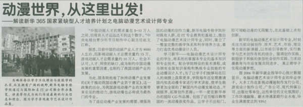 9月25日,《安徽商報》報道:“動漫世界,從這里出發——解讀新華365國家緊缺型人才培養計劃之電腦動漫藝術設計師專業”,敬請關注!
