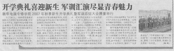 10月11日,《安徽市場報》報道:“開學典禮喜迎新生 軍訓匯演盡顯青春魅力——新華電腦專修學院207年秋季新生開學典禮暨軍訓總結大會隆重舉行”,敬請關注!