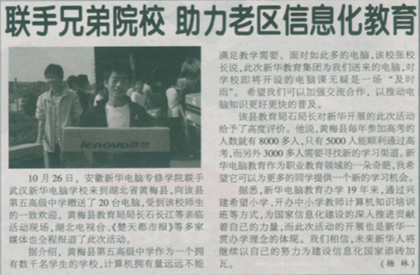 當前位置:首頁 > 新聞中心 > 青春新華 > 《安徽商報》報道:聯手兄弟院校 助力老區信息化教育