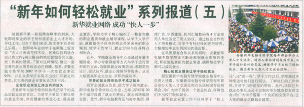 當(dāng)前位置:首頁 > 新聞中心 > 青春新華 > 《合肥晚報》報道:新華就業(yè)網(wǎng)絡(luò) 成功“快人一步”