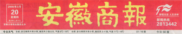 《安徽商報》報頭《安徽商報》報道新聞頁面截圖