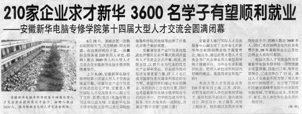 當前位置:首頁 > 新聞中心 > 青春新華 > 《安徽商報》報道:安徽新華電腦專修學院第十四屆大型人才交流會圓滿閉幕