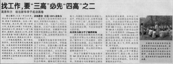 當前位置:首頁 > 新聞中心 > 青春新華 > 《安徽商報》報道:找工作,要“三高”必先“四高”之二