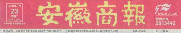 《安徽商報》報頭 《安徽商報》報道新聞頁面截圖