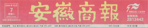 《安徽商報》報頭 《安徽商報》報道新聞頁面截圖