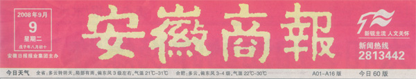 《安徽商報》報頭 《安徽商報》報道新聞頁面截圖