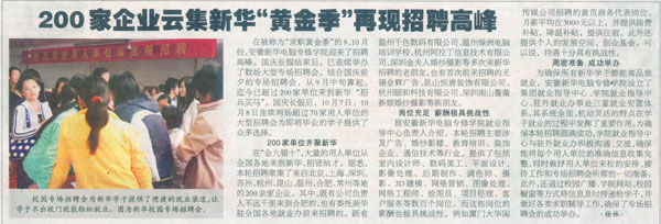 當前位置:首頁 > 新聞中心 > 青春新華 > 《合肥晚報》報道:200家企業云集新華“黃金季”再現招聘高峰