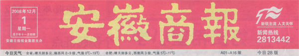 | 12月1日,《安徽商報(bào)》報(bào)道:“愛心面對(duì)面‘愛的暖流’系列公益活動(dòng)啟動(dòng)——給災(zāi)區(qū)孩子送一份新年禮物”,敬請(qǐng)關(guān)注! |