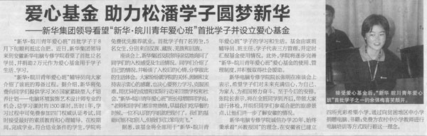 當前位置:首頁 > 新聞中心 > 青春新華 > 《江淮晨報》報道:愛心基金助力松潘學子圓夢新華