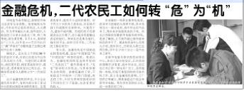 2月5日,《安徽商報》報道:“金融危機,二代農民工如何轉“!睘椤皺C””,敬請關注!
