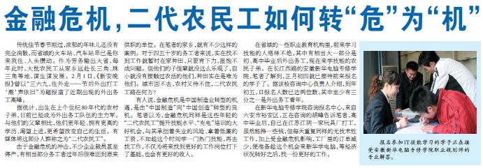 2月5日,《合肥晚報》報道:“金融危機,二代農(nóng)民工如何轉(zhuǎn)“危”為“機””,敬請關(guān)注!