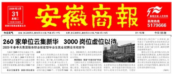 3月31日,《安徽商報》報道:“260家單位云集新華 3000崗位虛位以待!”,敬請關注!