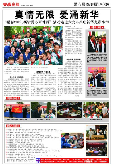 當前位置:首頁 > 新聞中心 > 青春新華 > 《安徽商報》報道:真情無限 愛涌新華