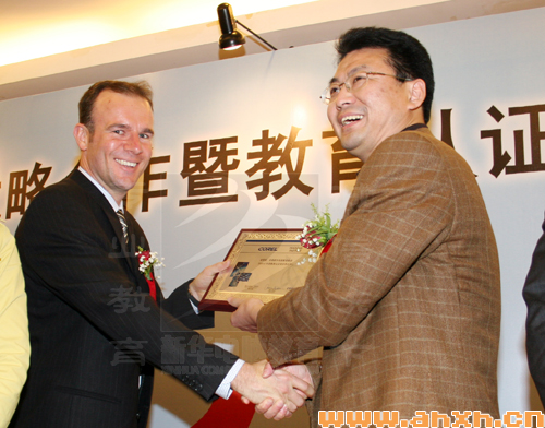 10月18日,“Corel&Hope軟件業(yè)務(wù)戰(zhàn)略合作暨教育認(rèn)證授權(quán)新聞發(fā)布會”在北京隆重召開。安徽新華電腦專修學(xué)院成為Corel新認(rèn)證體系第一批授權(quán)培訓(xùn)中心。加拿大Corel公司亞太區(qū)總裁Gavin Watson先生和Corel中國區(qū)總經(jīng)理Philip Zhao先生親自為沙旭院長授牌,沙旭院長作為應(yīng)邀貴賓就座于前排,并作為授權(quán)機(jī)構(gòu)代表在主席臺發(fā)言。