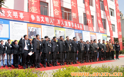 沙院長及校領導率先在橫幅上簽下了自己的名字,隨后在校歌“新華的天空”的歌聲中同學們秩序井然的簽下了自己的名字,并莊嚴地宣誓:我是一名新華人,為了共建我們的文明校園,我宣誓,講文明話,做文明事,遵守文明校園五要十不準,爭當文明人。
