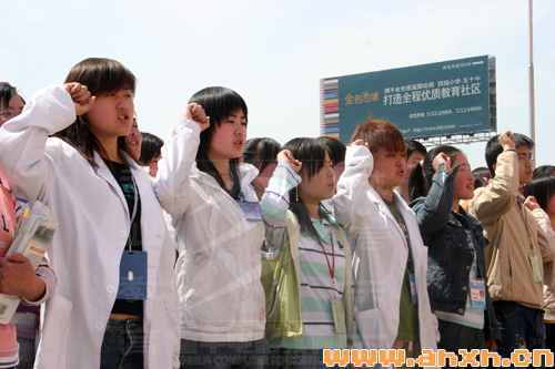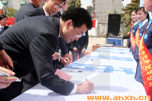 在校歌“新華的天空”的歌聲中同學們秩序井然的簽下了自己的名字