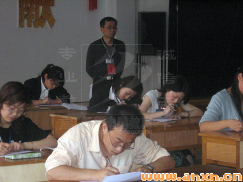 測試于上午10點30分開始,采取閉卷考試的形式,來自各學區各部門的50名新華員工參加了測試,束開俊副院長親自蒞臨現場監考。
