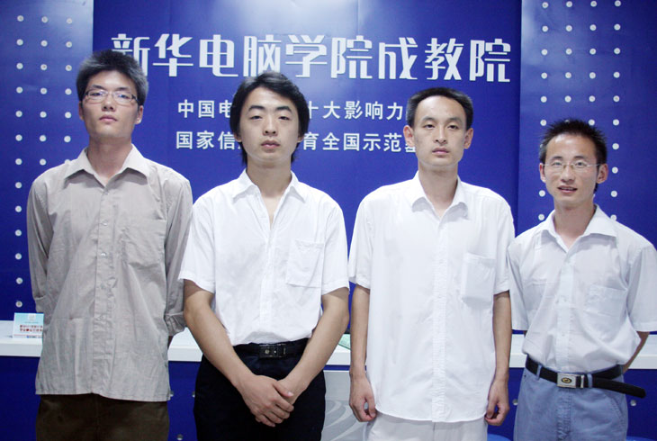 來自不同地方的四位同學(xué),擁有各不相同的人生經(jīng)歷,但卻為了一個共同的夢想來到新華,來尋找屬于自己的那份天空。曾經(jīng)大學(xué)畢業(yè),并做過一年銷售的汪軍輝說:“大學(xué)畢業(yè)后,在社會上摸爬滾打了一年多,發(fā)現(xiàn)自己的興趣仍在計算機(jī)上,于是辭去工作決定去學(xué)電腦。在經(jīng)過詳細(xì)的比較后,為新華的專業(yè)和實(shí)力所吸引,選擇了新華來實(shí)現(xiàn)自己的夢想。”孔德軍和瞿志都是高中畢業(yè)后就來到新華,陶喜樂則是師范畢業(yè)做了一年的物理老師后,重新選擇人生的道路,來新華追尋自己的夢想!