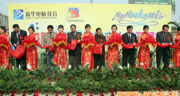 校領(lǐng)導(dǎo)與嘉賓為新華第三屆校園數(shù)字文化節(jié)開(kāi)幕剪彩