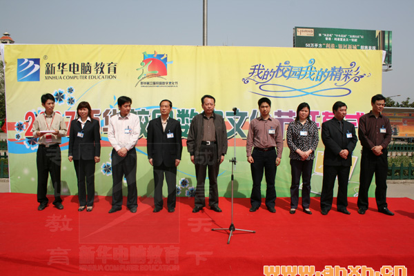 新華電腦專修學院教學總監何楊,各學區、各部門負責人等參加了總決賽的開幕儀式