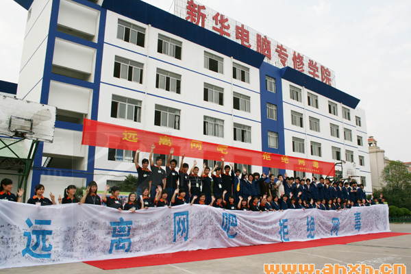 安徽新華電腦專修學院西區(qū)舉辦了 “遠離網(wǎng)吧,拒絕網(wǎng)毒” 大型千人簽名儀式