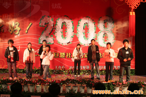 在晚會中主辦方向觀眾播放了學(xué)院優(yōu)秀社團的幻燈片。他們在社團活動月中舉辦了“文字錄入大賽”、“網(wǎng)絡(luò)設(shè)計大賽”、“祭掃烈士墓”、“校園歌手大賽”等一系列活動。最后,由學(xué)院領(lǐng)導(dǎo)給新一屆社團干部頒發(fā)了聘書并為獲得優(yōu)異成績的同學(xué)頒發(fā)了獎品。