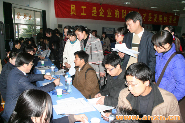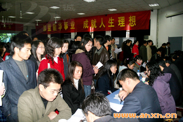 3月8日,新華集團(tuán)2008年大型春季人才招聘會在安徽新華電腦專修學(xué)院盛大召開。本次招聘面向管理、房產(chǎn)營銷、工程技術(shù)、教師、文職以及后勤等60多個崗位,新華集團(tuán)、新華教育集團(tuán)以及所屬單位新華房產(chǎn)、天一物業(yè)、華地置業(yè)、安徽新華學(xué)院、安徽新華電腦專修學(xué)院、安徽新東方烹飪專修學(xué)院、安徽萬通汽修專修學(xué)院、安徽東方巴黎服裝藝術(shù)專修學(xué)院、安徽新華學(xué)校分別設(shè)立招聘展位。集團(tuán)高層領(lǐng)導(dǎo)親自出席并主持復(fù)試。從上午八點至目前,共吸引省內(nèi)外1000多名前來面試的各類人才參與角逐。