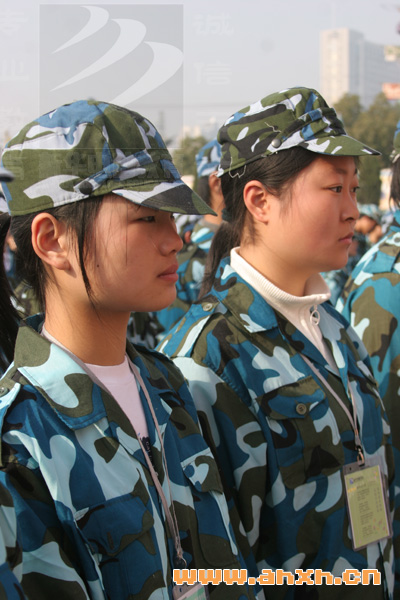 安徽新華電腦專修學院365國家緊缺型人才培養計劃—電腦環境裝飾藝術設計師專業0701班向然同學代表全體參訓同學宣誓,在為期10天的軍訓中一定會服從命令,嚴格要求自己。發揚不怕苦、不怕累、艱苦奮斗的優良傳統,以自己的實際行動向學校交上一份滿意的答卷。