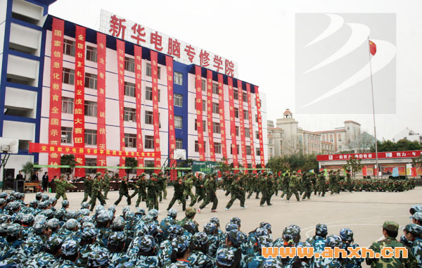 新華通過種類豐富、類型多樣的校園活動(dòng)提高學(xué)子的職商,保障他們輕松就業(yè),圖為軍訓(xùn)場(chǎng)景