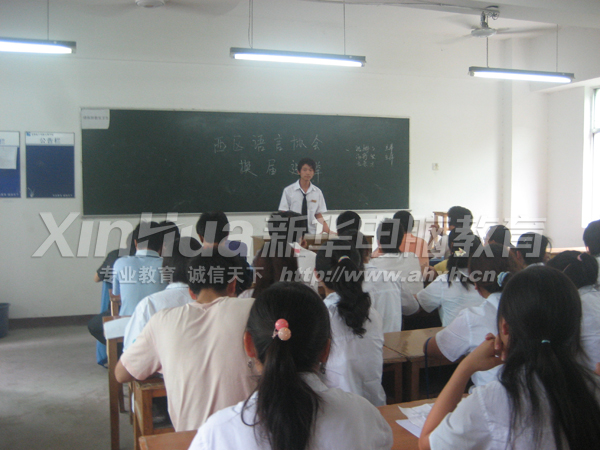 據(jù)本次指導(dǎo)老師——學(xué)生管理分部主管陸寬老師介紹,安徽新華電腦專修學(xué)院的語言協(xié)會成立于2005年11月,現(xiàn)共有成員20多人,是有一個以“快樂一家人”為理念,以提高會員語言表達能力、人際交往能力和溝通能力為目標(biāo),以創(chuàng)建學(xué)習(xí)型社團,幫助會員們提高綜合素質(zhì)、實現(xiàn)人生理想的為宗旨的新型社團組織。在新老成員交替之際,為了保證學(xué)生社團工作的正常開展,同時為了給自身提供一個鍛煉和展現(xiàn)的平臺,語言協(xié)會開展此次別開生面的換屆競選活動。任職的學(xué)子將在擔(dān)任社團工作的過程中,得到逐步成長。