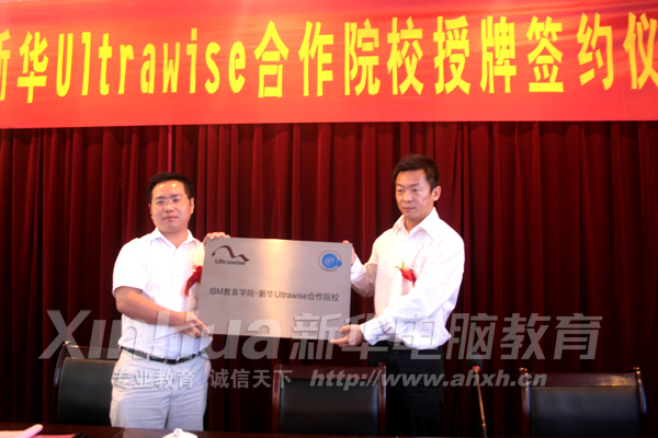 Ultrawise公司副總經理焦雅兵與安徽新華電腦專修學院院長張明共同簽署、交換了《校企共建“IBM教育學院-新華Ultrawise合作院校”協(xié)議書》并揭牌,此舉標志著新華電腦教育領域向國際化、專業(yè)化方面的又一次重大突破。