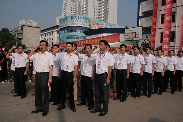 最后,新華365計劃教育校區(qū)的全體教職員工面對國旗,面對全體同學(xué),在鄭成鯤主任的帶領(lǐng)下莊嚴(yán)宣誓:忠于人民的教育事業(yè),履行教師的神圣職責(zé),貫徹國家的教育方針,全面實(shí)施素質(zhì)教育,……做學(xué)生良師益友,鑄教師高尚人格,為中華民族的偉大復(fù)興,為人類社會的文明進(jìn)步,獻(xiàn)出全部力量!