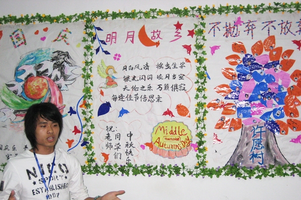 據(jù)了解,此次活動(dòng)是以“中秋”和“國(guó)慶”這兩個(gè)國(guó)人最為喜歡的節(jié)日為主題。其間涌出了許多新穎的作品,比如,國(guó)慶漫畫、白鴿饒地球和天安門展翅高飛、中秋節(jié)的來(lái)歷及浪漫詩(shī)詞,深得老師和同學(xué)們的如評(píng)。更有很多班級(jí)別具一格,貼滿小照片的多彩許愿樹、如彩帶般貫穿板報(bào)的“2008”等都極具特色,成為板報(bào)活動(dòng)中的亮點(diǎn)。