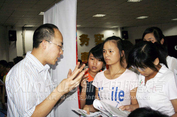 其中,南京衛崗公司6月17日剛到新華舉行專場招聘會。僅隔兩天,南京衛崗再次來到新華招聘人才。而另一個老合作伙伴——上海得搜廣告公司人力資源總監韓璐也來到新華。從他口中我們得知,目前公司95%的員工都是來自新華,骨干成員也都是新華學子。在他們的共同努力下,公司已經成為阿里巴巴在上海的頂級代理商,新華學子朱亞男也因為業績卓越得到馬云的接見。目前,互聯網以其迅速、高效、低成本等眾多傳統媒體所無法比擬的優勢正越來越多的受到企業的歡迎,利用互聯網進行品牌推廣、產品營銷正越來越成為一種趨勢。公司的快速發展使得新華電腦專修學院成為上海得搜公司的人才輸送地,新華學子不出校門便能直接被聘入網絡營銷行業。