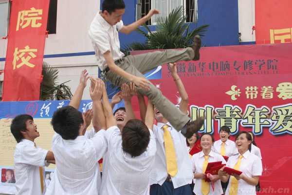 新聞鏈接:“汶川大地震”發生后,共青團合肥市委與安徽新華電腦專修學院聯合設立了“皖川愛心班”為四川松潘地區的孩子提供40個免費學習IT技能的名額。自2008年7月18日在安徽新華電腦專修學院在建校20周年新聞發布會上正式啟動,于9月28日正式開班,共35名學生,就讀于新華365國家緊缺型人才培養計劃—電腦環境裝飾藝術設計師專業。經過一年的學習,所有學子已經順利完成了學業,正式畢業。